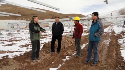 王總經理抵達玉樹后,首先前往金太陽2兆瓦水光互補發電項目工地,對工程形象進度、設備到貨及安裝就位、職工生活情況,特別是目前工程建設所面臨的困難等做了全面深入的了解。王總經理要求青海玉能電力開發有限公司克服氣候寒冷等不利因素,合理調配資源,增加安裝施工人員,保證各類材料設備及時到貨,加快項目建設進度,確保實現年底投產發電目標。隨后,王總經理一行又來到禪古水電站大壩檢查,詳細詢問了庫區來水情況,要求玉樹電力公司高度重視水庫運行和安全保障工作。
