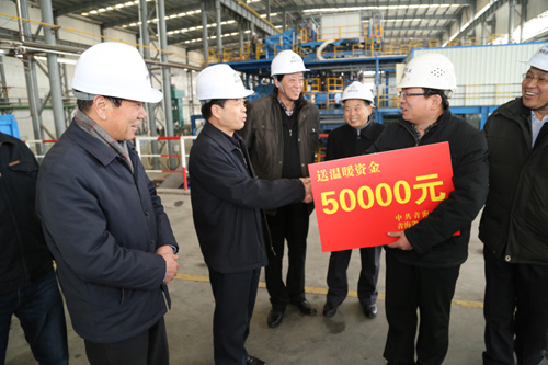 駱玉林副省長深入生產車間,察看了解了聚能鈦業經營發展情況,并代表省委、省政府頒發了送溫暖慰問金。他指出,聚能鈦業是我省新材料產業的重點企業,面對復雜多變、低迷疲軟的市場環境,全體干部職工堅守目標、頂住壓力,求真務實、攻堅克難,2014年各項工作取得了較好成績。他要求聚能鈦業全面研判經濟形勢,認準行業發展前景,把握其中蘊藏的重要機遇,進一步堅定信心,加快自主創新,搶占國內市場,推進EB爐成套設備國產化項目,延伸完善產業鏈條,增強核心競爭能力,圓滿完成2015年的生產和銷售任務,實現企業持續健康發展。在慰問聚能鈦業困難職工王東東、王軍同志時,駱玉林副省長詳細了解他們的學習、工作和生活情況,勉勵他們自強不息,不斷提升素質本領,增強戰勝困難的能力,以團結協作、勤奮敬業的實際行動,為促進企業科學發展做出積極貢獻。