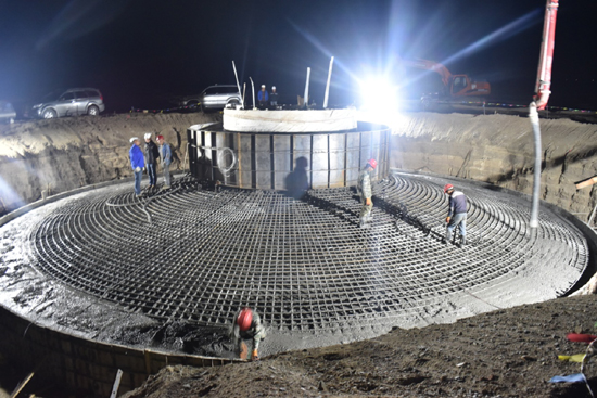 近一個多月來,茫崖風電公司以扎實開展“兩學一做”學習教育為契機,有效發揮黨員干部的先鋒模范作用,充分調動各方面積極性和創造性,凝心聚力,戰勝強風揚沙等惡劣氣候條件帶來的困難,全面統籌協調推進工程建設工作,取得重要成果。在完成全部20臺機組基坑開挖、混凝土墊層澆筑及鋼筋加工制作任務的同時,其首臺機組鋼筋混凝土基礎于919日晚24點澆筑成型,至107日共澆筑6臺機組基礎。目前,各參建單位正加班加點,緊張有序地按計劃節點落實任務,確保在10月底結束全部土建作業,11月上旬開始塔架和機組安裝工作。茫崖風電公司全體員工決心團結協作、真抓實干、攻堅克驗證,力爭在年內實現首臺機組并網發電目標,為壯大青海水電集團新能源業務,服務我省綠色經濟發展大局做出積極貢獻。(文/生國 圖/茫崖風電)