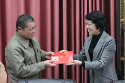 調研期間,蘇寧同志還看望了生活困難職工——青海聚能鈦業有限公司先進工作者李善慶同志,為他贈送了慰問金。