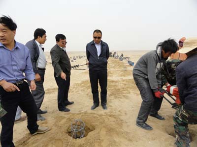 當(dāng)天早晨,王總經(jīng)理在集團(tuán)副總經(jīng)理、格爾木水電有限公司總經(jīng)理于宗甲陪同下,首先來(lái)到正在開(kāi)展建前準(zhǔn)備工作的格爾木市東出口20兆瓦光伏發(fā)電站工地,察看了選址條件和水、電、路設(shè)施,詳細(xì)詢問(wèn)了前期手續(xù)申報(bào)和施工準(zhǔn)備情況,并參觀了周圍在建同類項(xiàng)目施工現(xiàn)場(chǎng)和匯流送出工程。他要求集團(tuán)新能源辦繼續(xù)全力以赴推動(dòng)工作,格水電公司積極予以支持配合,加快完成項(xiàng)目報(bào)審程序,及早進(jìn)入工程建設(shè)階段,確保其在年底前投產(chǎn)發(fā)電,并力爭(zhēng)進(jìn)一步擴(kuò)展規(guī)模,真正用足用好國(guó)家扶持太陽(yáng)能發(fā)電產(chǎn)業(yè)的各項(xiàng)政策。