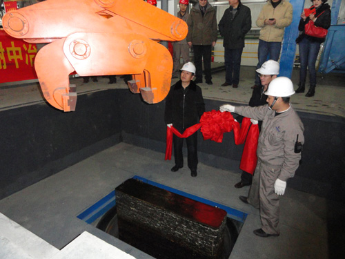 (中外合作雙方代表在現場觀看鈦錠出爐)