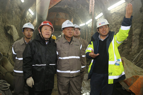 王海青總經理向張偉副廳長介紹了調水總干渠輸水隧洞進口段涌水險情及搶修進展。截止3月12日16時,洞內恢復供電,施工人員連續進行清淤作業,CMC公司技術人員正在進行TBM主控室電器設備安全和技術指標測試,為全面恢復設備性能,順利啟機做準備,搶修工作總體較為順利。在出口段隧洞,張偉詳細了解TBM檢修、拆裝情況,并查看了人工鉆爆施工和現場組織管理情況。張偉強調,參建各方要加強配合協作,完善技術措施,優化設計和施工路線,加強安全監管,加快施工進度,確保按期完成建設施工任務。(文、圖:延青)