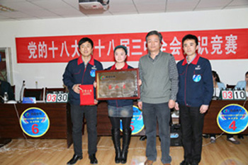 集團黨委副書記、工會主席李建民同志在競賽活動結束時指出,競賽方式有利于進一步鞏固和擴大學習宣傳黨的十八大和十八屆三中全會精神的成果。他強調,集團各級黨組織和工會組織把學習宣傳貫徹落實黨的十八大、十八屆三中全會精神作為當前和今后一個時期的重要政治任務來抓,與深入學習習近平總書記系列講話精神相結合,以此次競賽活動為契機、科學謀劃、精心安排,乘勢而上、狠抓落實,參賽隊員要切實履行好骨干宣傳員的使用,發揮好帶動輻射和先鋒模范作用,持續引導全體黨員和干部職工深刻領會黨的十八大和十八屆三中全會精神實質,準確把握全面深化改革的重大決策部署,密切聯系實際,學以致用、學用結合, 為促進企業改革發展,服務“三區建設”、實現“兩新目標”,做出新的更大的貢獻。